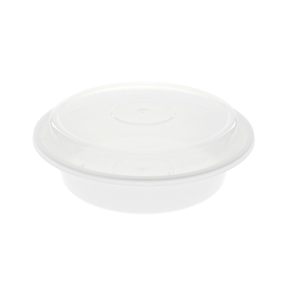 Round 7in PP Container & Lid (24oz, Standard, White), 150 Count